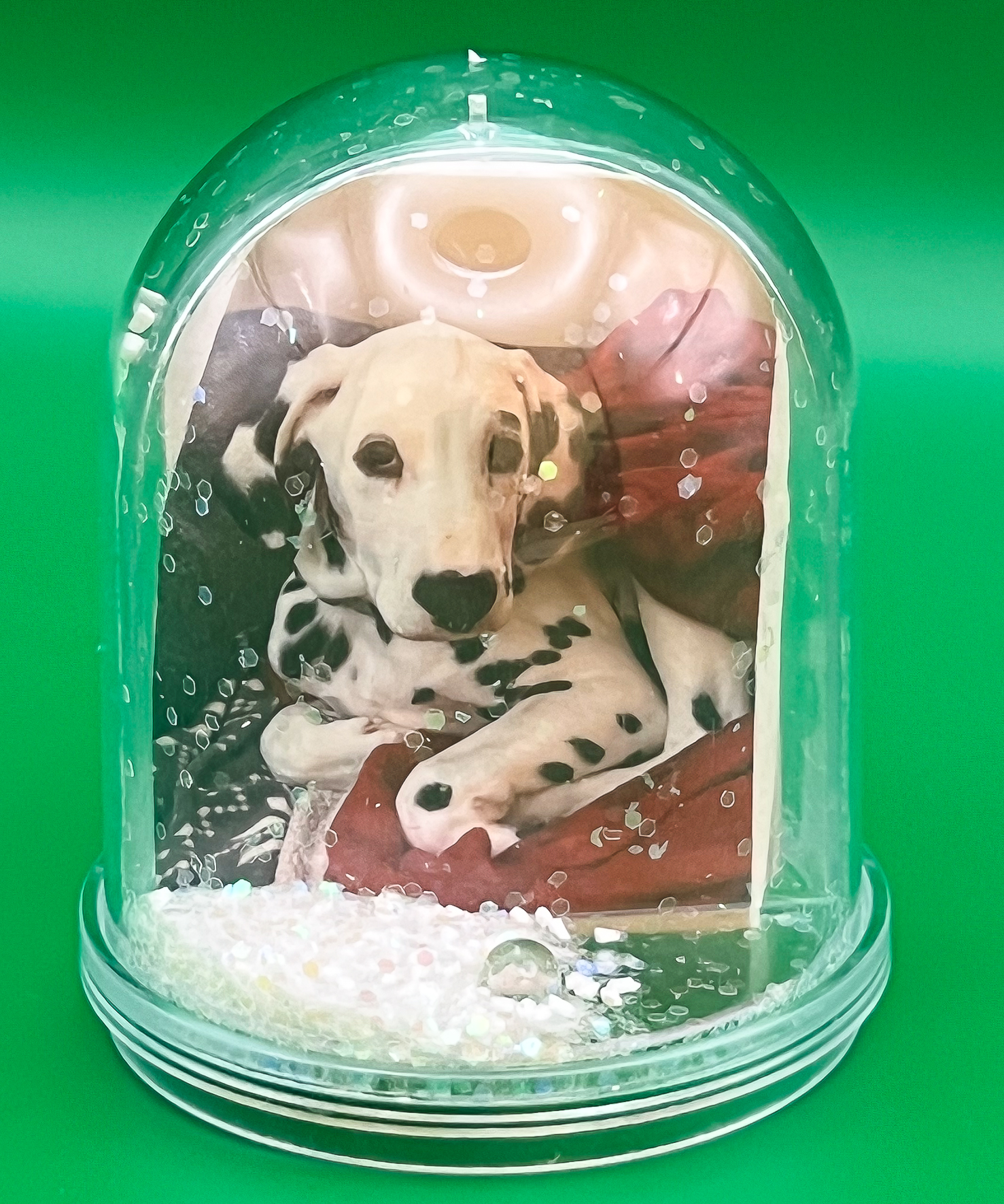 Läbipaistvast plastikust lumekuul, mille sisse saab panna 2 fotot suuruses ca 4×5 cm. Lumekuuli põhi 5,5 cm ja kõrgus 6 cm. fotod on sees vahetatavad. Vee, milles sätendavad “lumehelbed” kuuli loksutamisel hõljuma hakkavad, lisab tellija ise.